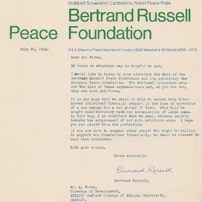 A letter regarding BR's books on education, in Dominic Winter Catalog, 29 Jan. 2014, where the name is spelled "Wiern". A second image was added 2023/01/28 from Barnabys.